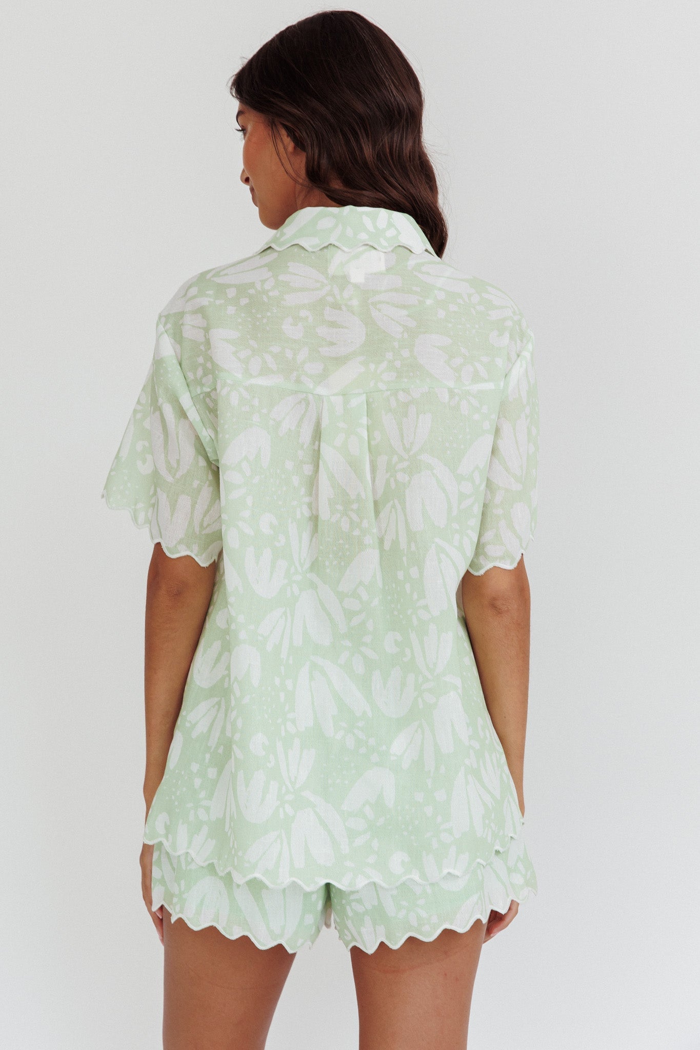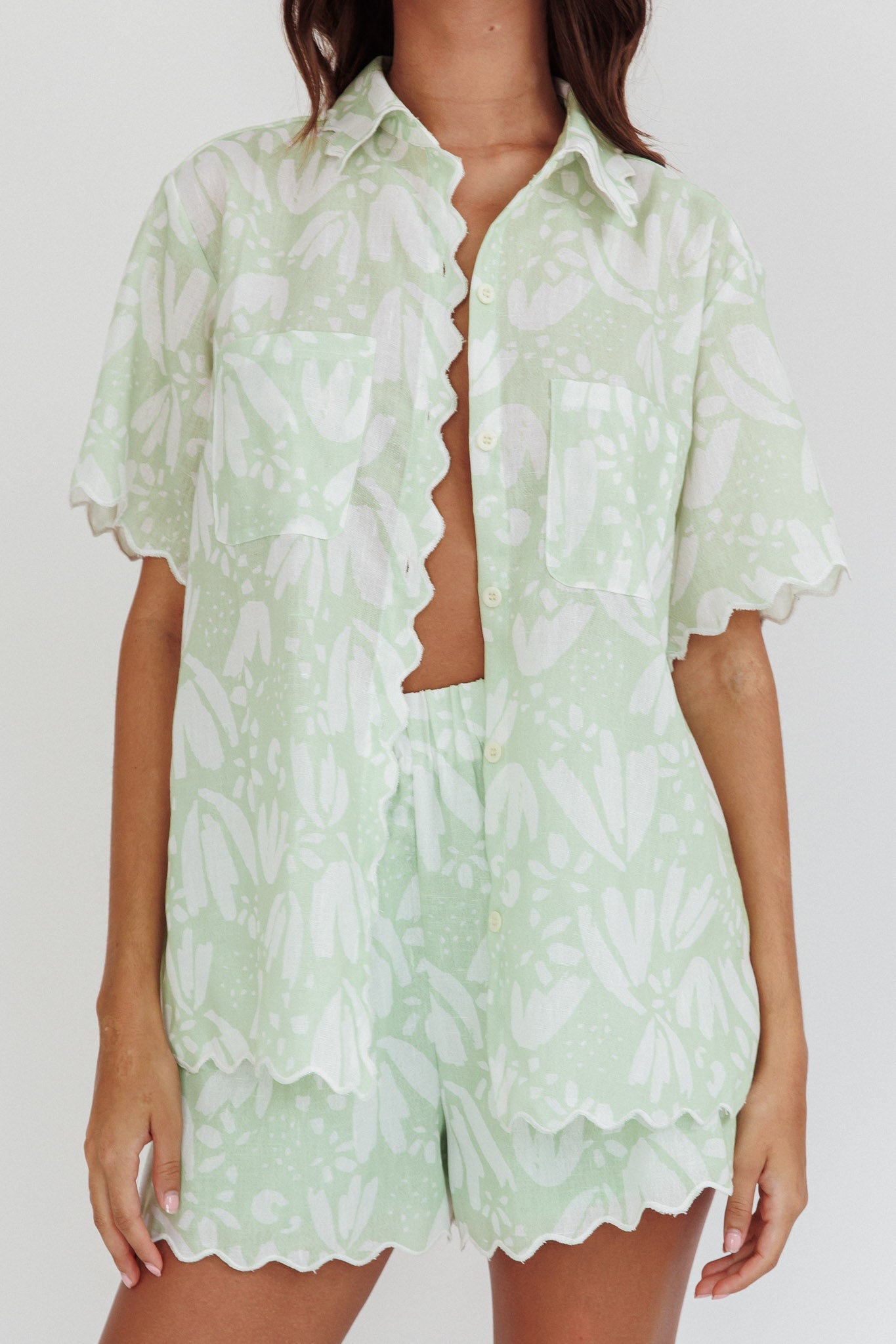Swing Of Things Scalloped Edge Shirt Print Sage