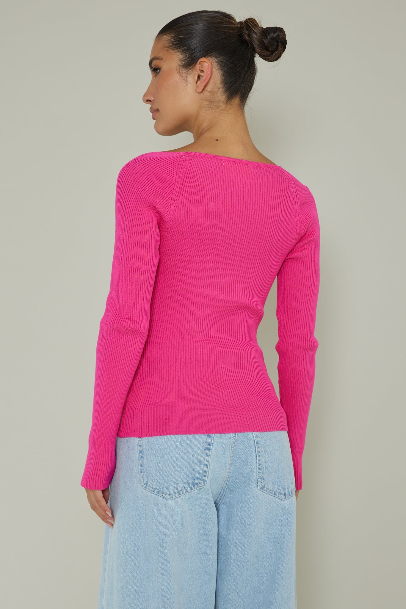 Switch Focus Long Sleeve Knit Top Hot Pink