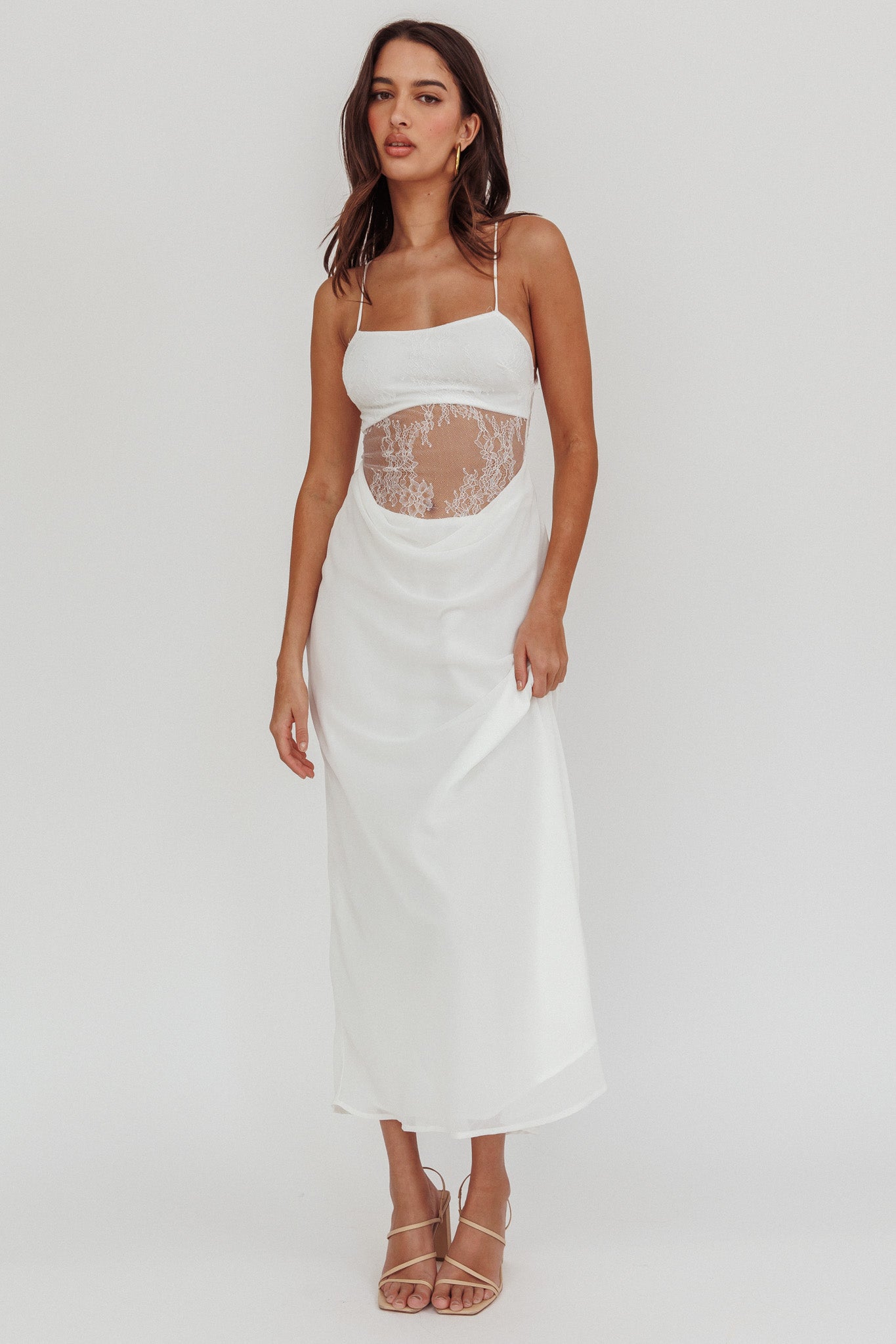 Step into timeless elegance with our These Days maxi dress. It's a wardrobe staple that effortlessly combines classic design with contemporary style. It features a lace waist panel that reveals glimpses of skin while maintaining an air of mystery - the perfect balance of daring and style! Wear it to formal functions or special events!