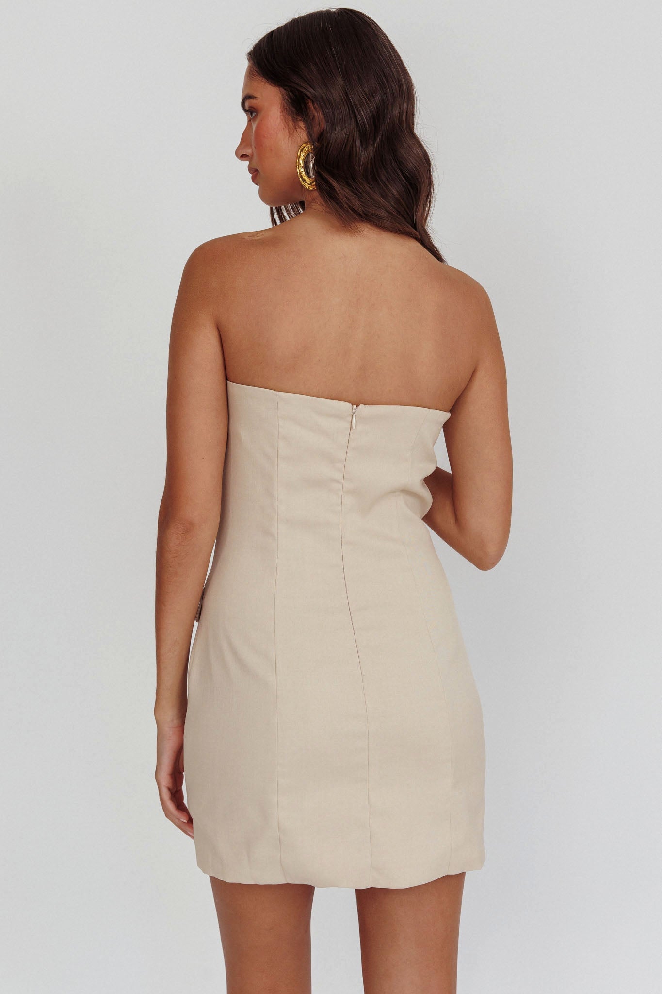 Titania Strapless Buttoned Mini Dress Light Taupe