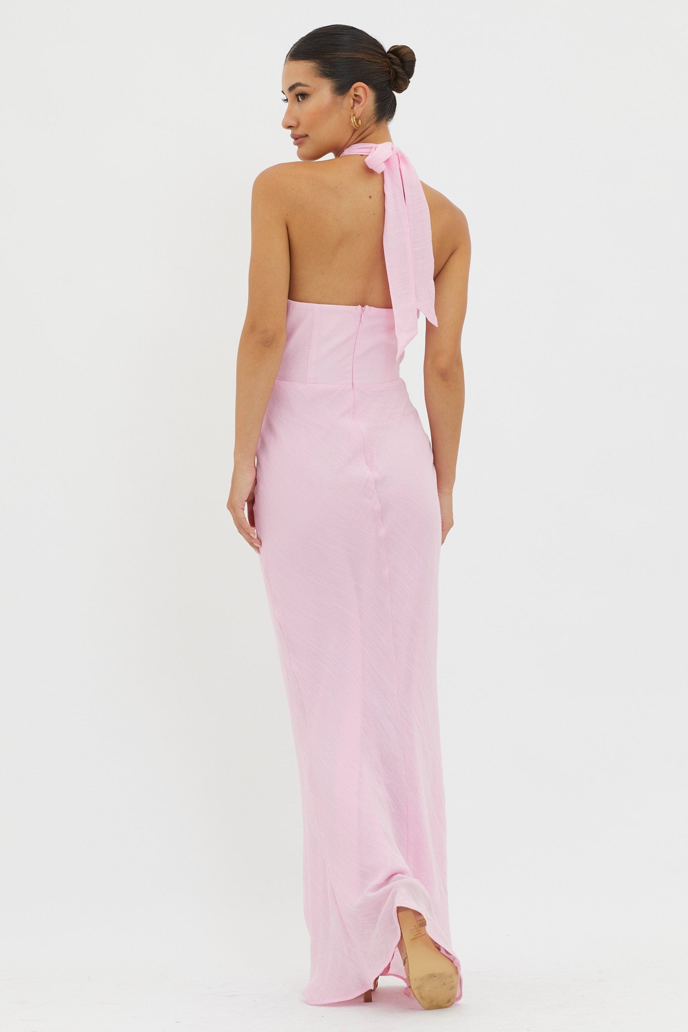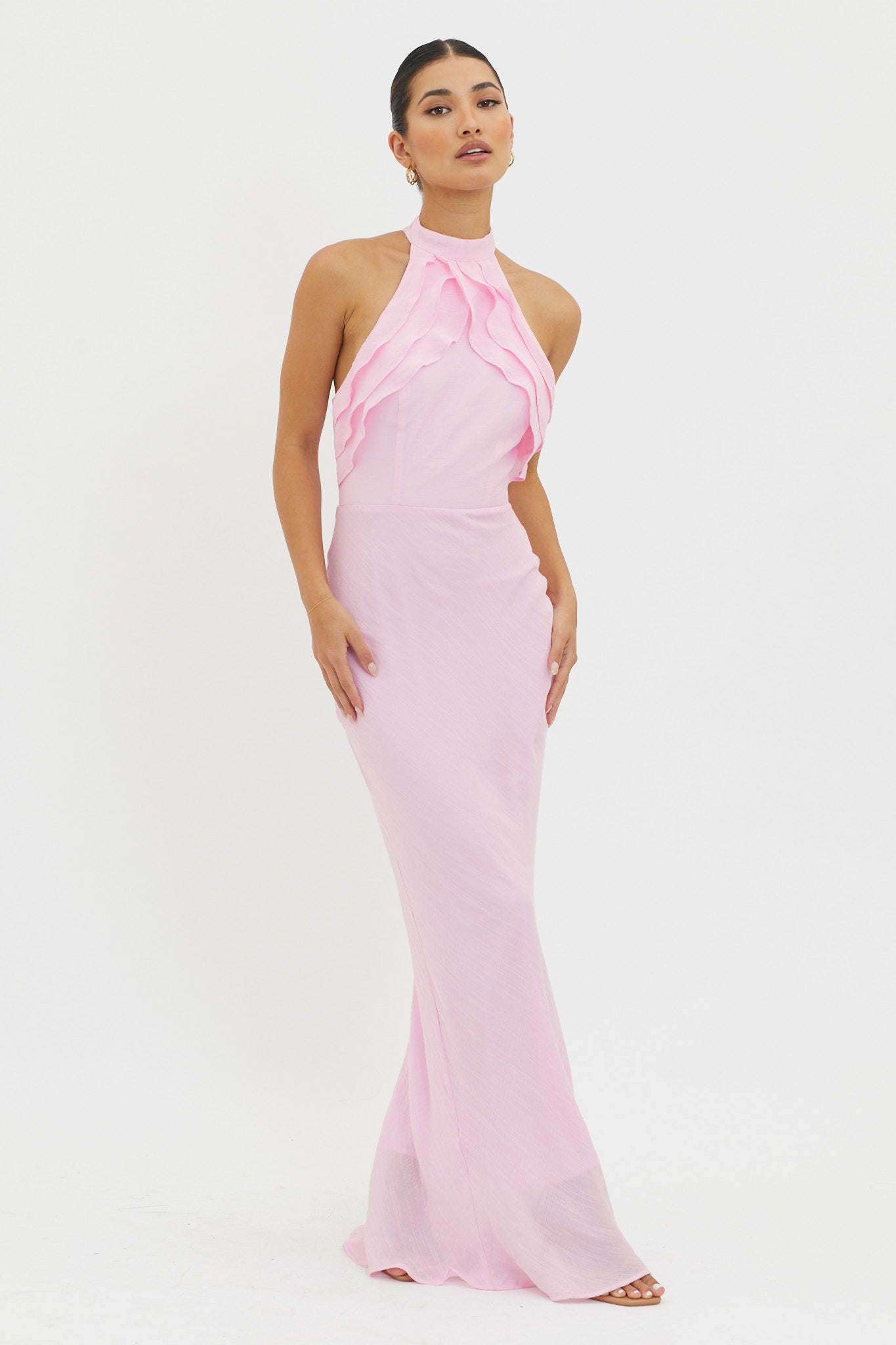 Make them stop and stare in our stunning Topaz Skies maxi dress. Featuring a flattering halter neckline and pretty ruffle trim. It's perfect for a glam event or birthday celebration. Team it with nude heels and a clutch for an unforgettable look.