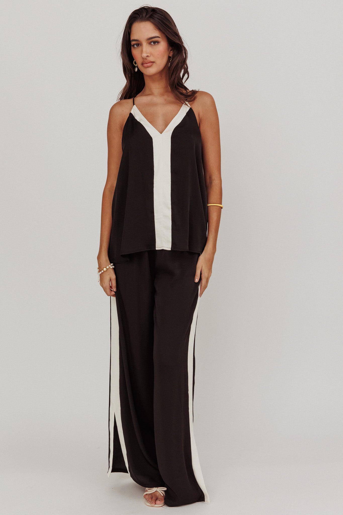 Light up the room in our Unwritten pant. Designed to flatter, these pants feature a relaxed silhouette that effortlessly transitions from day to evening. The contrast panel adds an artistic flair! Whether you're attending a cocktail party or going out to brunch, these pants promises to be your go-to choice. Pair it with it's matching top for effortless styling!