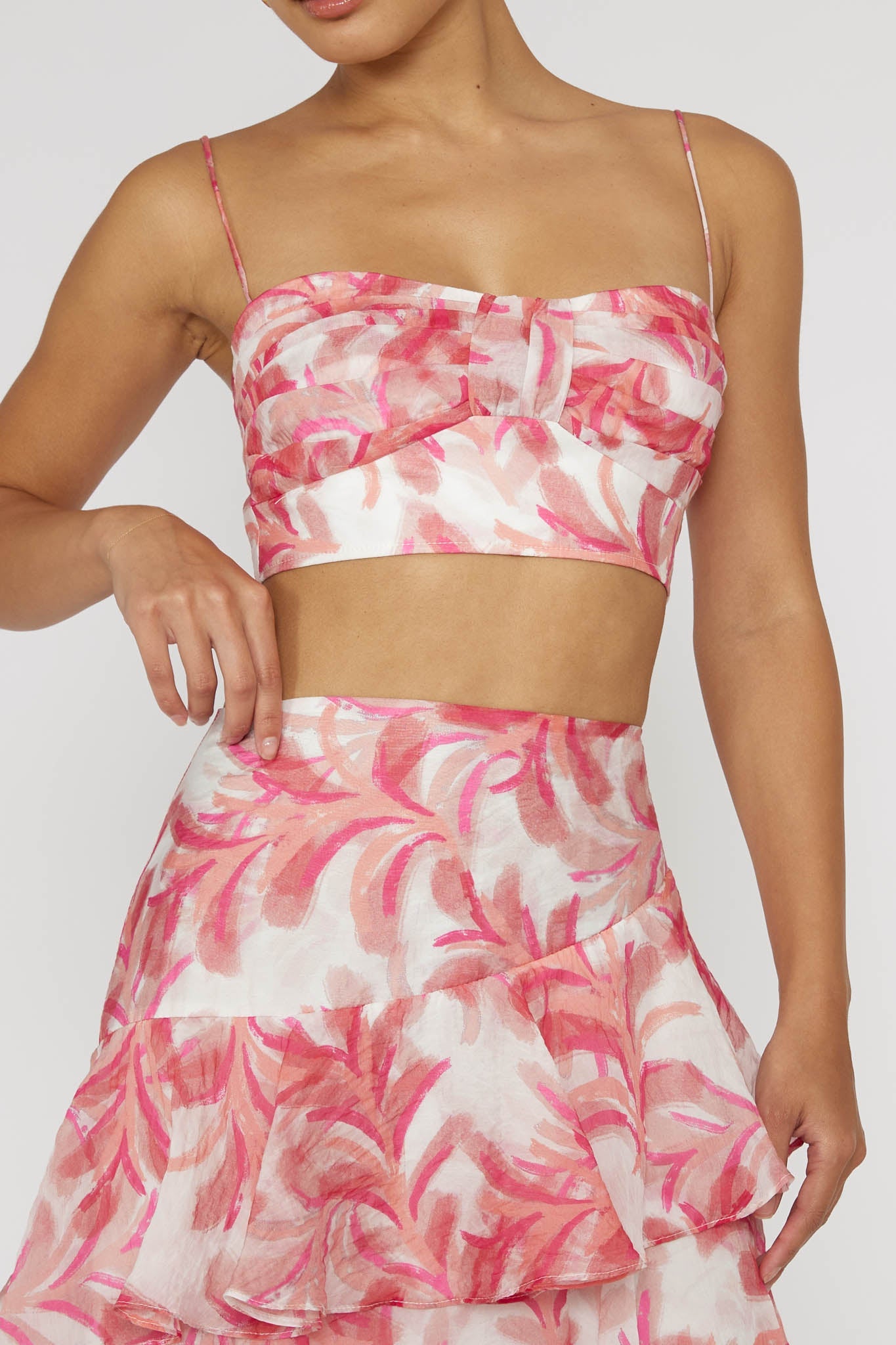 Jaws will drop when you float by in our gorgeous Veda crop top. With its pretty pleat detail and floral print fabric, it's fit for a princess. Team it with its matching skirt and strappy heels for an anniversary dinner or special birthday celebration.