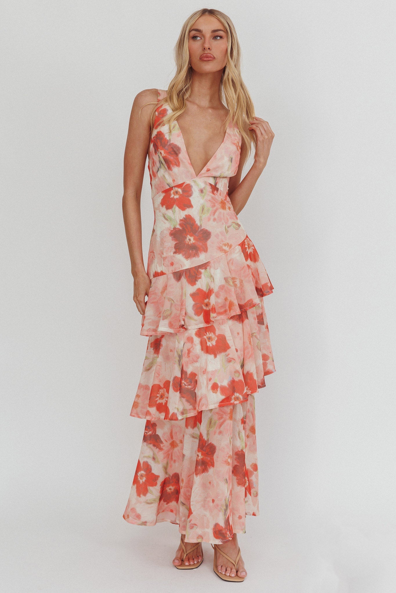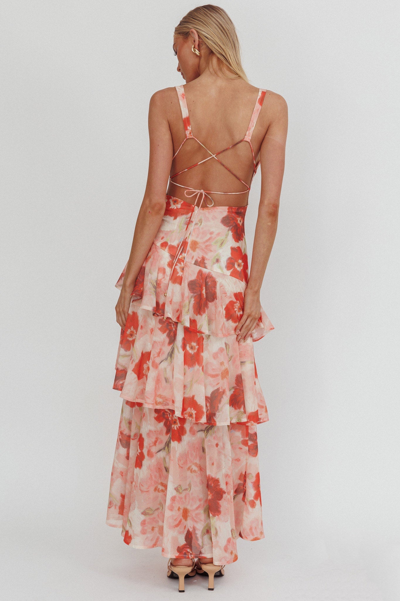 Veda Strappy Back Ruffle Maxi Dress Poppies Red