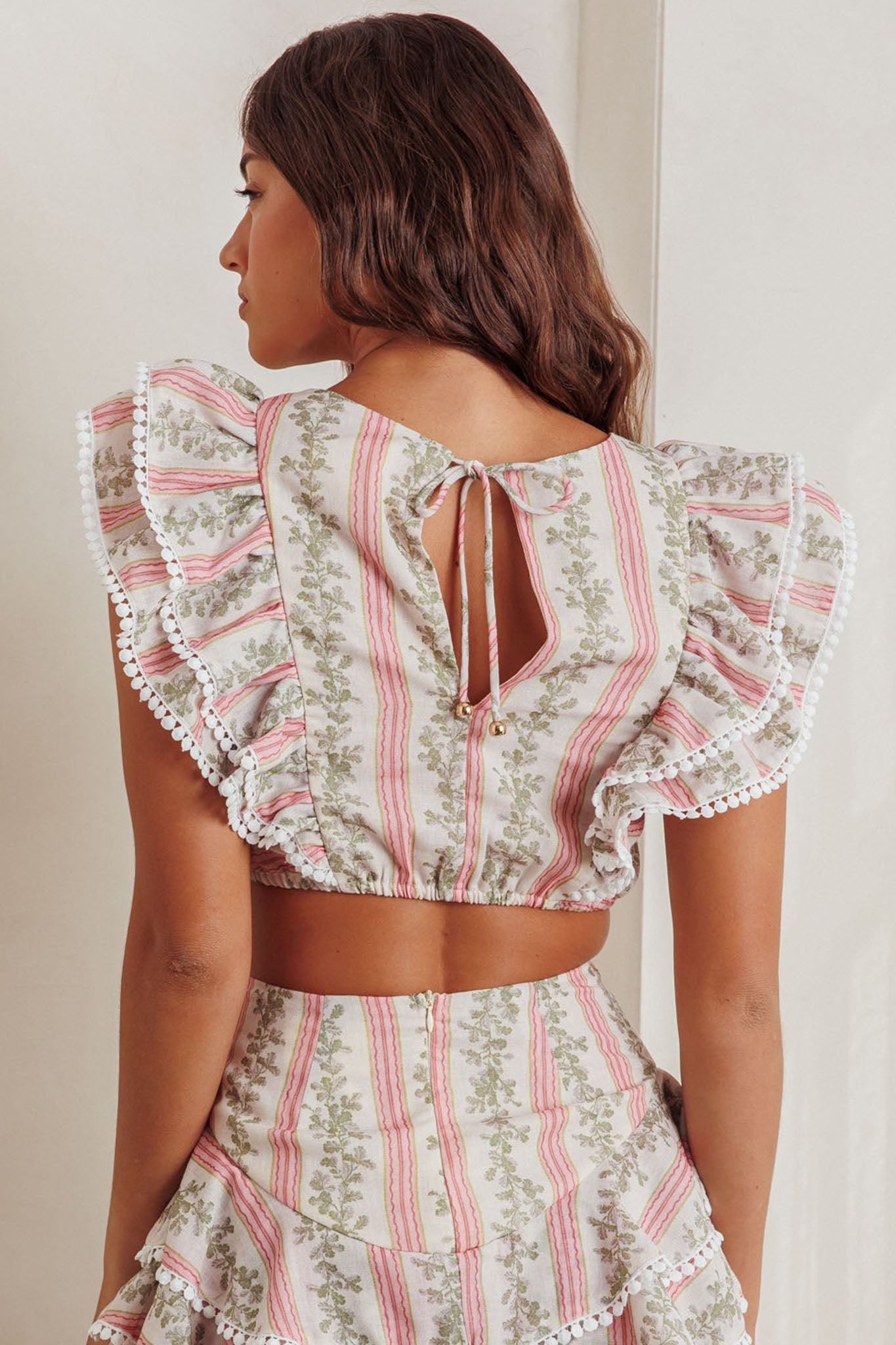 Wild And Free Ruffle Trim Crop Top Floral Natural
