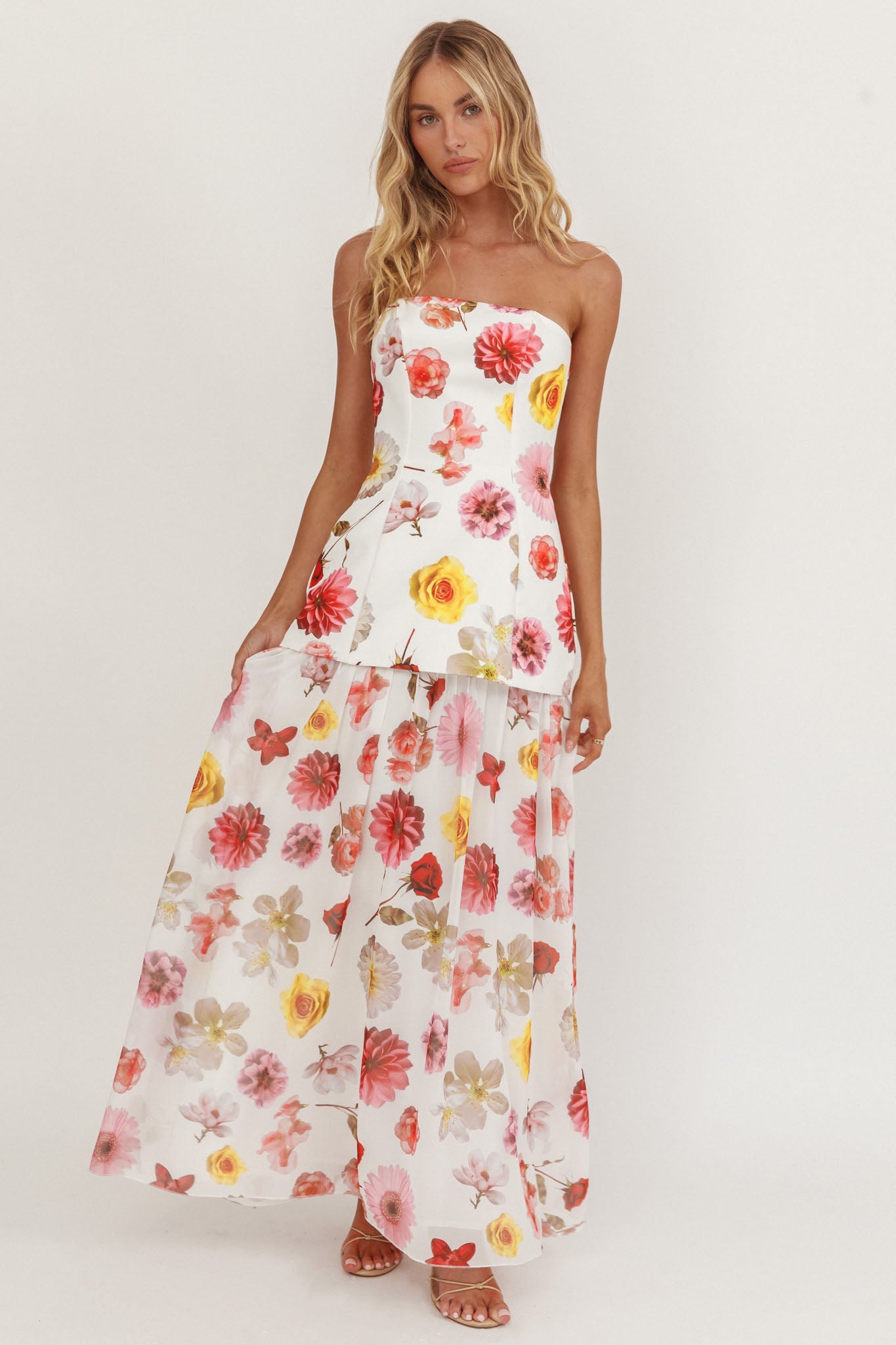Wilma Flowy Hem Strapless Maxi Dress Floral