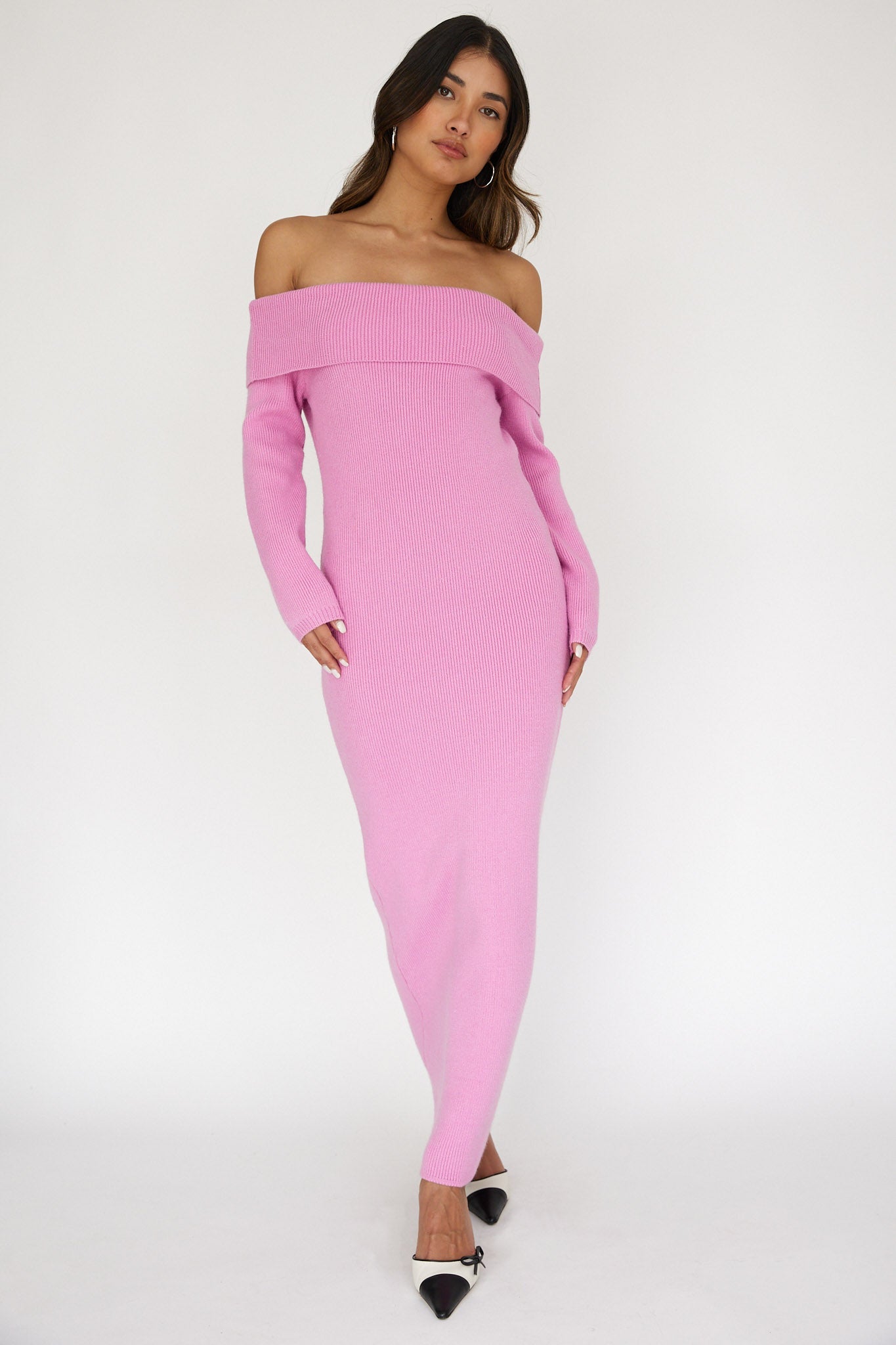 Winter Wonder Off-Shoulder Knit Maxi Dress Pink