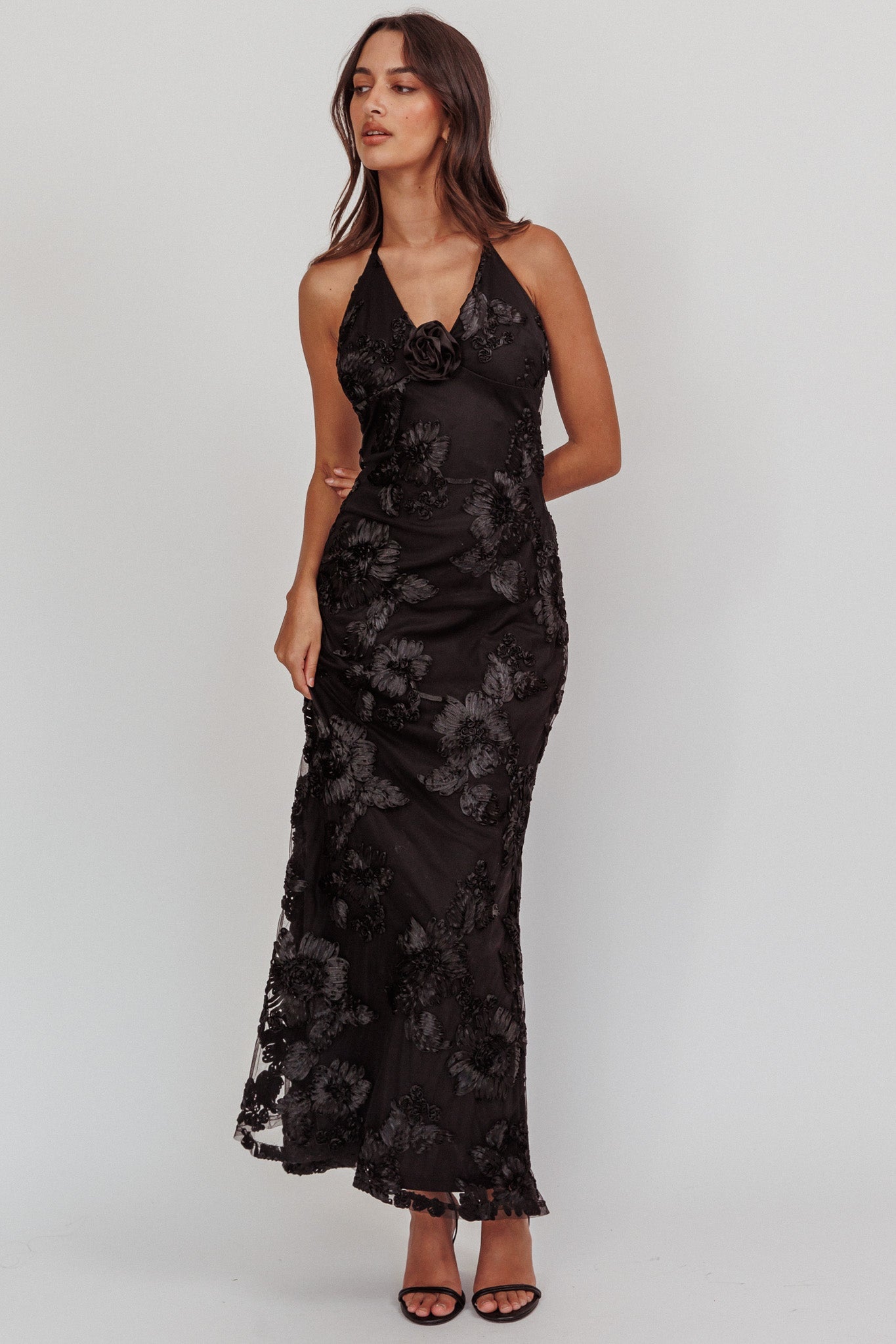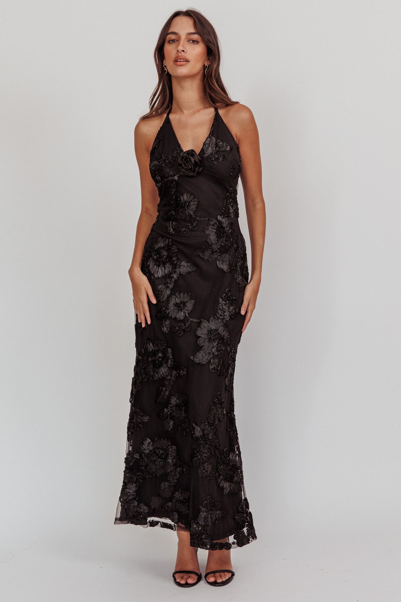 Your Affections Rosette Ribbon Embellished Maxi Dress Black
