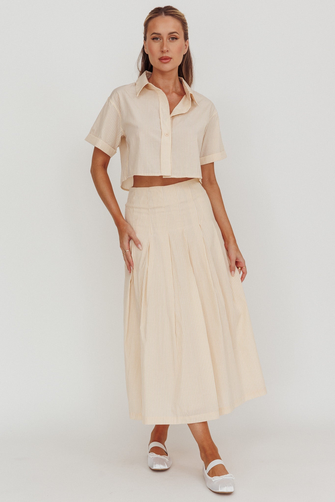 Zealous A-Line Striped Midi Skirt Beige/Off White